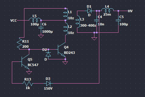 D2 je pro ochranu báze Q4, obvod s Q5 R13 a D3 je regulace na 150V a L5+C6 je filtrace napájení (Přece jenom pracujeme s audiem