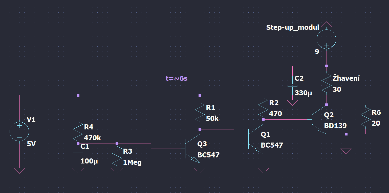 aby se step-up modul neuvařil protože když je vlákno studené, nemá skoro žádný odpor. Obvod připojí vlákno nejdříve