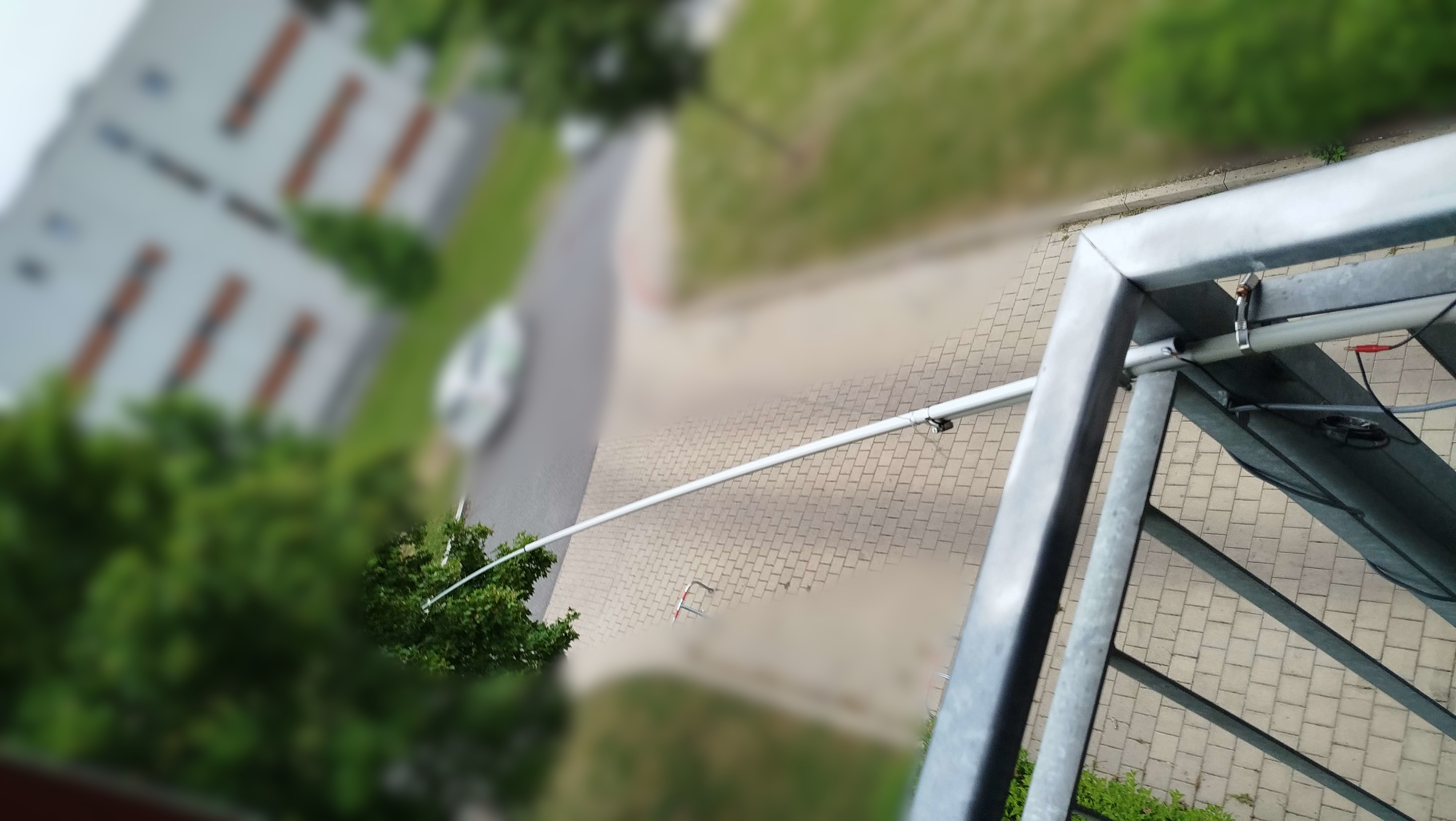 Anténa namontovaná na zábradlí (Velmi brzy tuto zrůdnost předělám)
